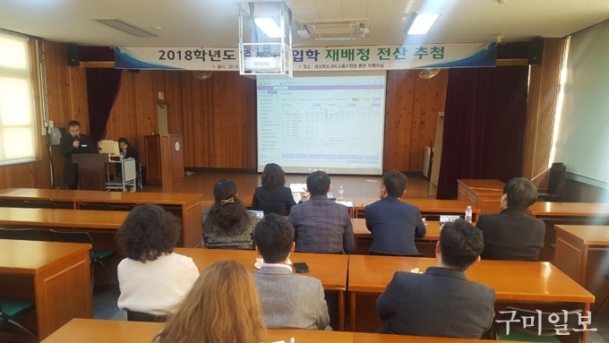 구미교육지원청(교육장 노승하)은 2월 13일(화) 14시에 교육청 대회의실에서 구미교육지원청 중입추첨관리위원회 및 참관자가 참석한 가운데 2018학년도 중학교 입학 본배정(2018. 1. 16.) 이후 타시·도 및 타시·군에서 유입된 46명과 구미시 관내 거주지이전으로 재배정 희망자 86명을 포함하여 132명에 대하여 중입 재배정 전산 추첨을 실시하였다.