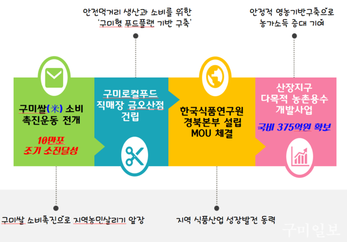 지역농가의 안정적 유통망을 확보하고 소득창출로 지속가능한 농업농촌 체계를 마련하여 안전 먹거리 생산과 소비를 위한 ‘구미형 푸드플랜 기반’을 구축한다.
