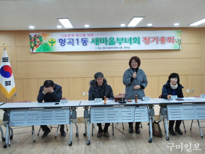 형곡1동은 1월 3일(수) 오후 6시 30분 주민센터 2층 회의실에서 윤창욱 도의원, 박교상 시의원, 새마을부녀회원 등 20명이 참석한 가운데 2018년 새마을부녀회 정기총회를 개최했다.