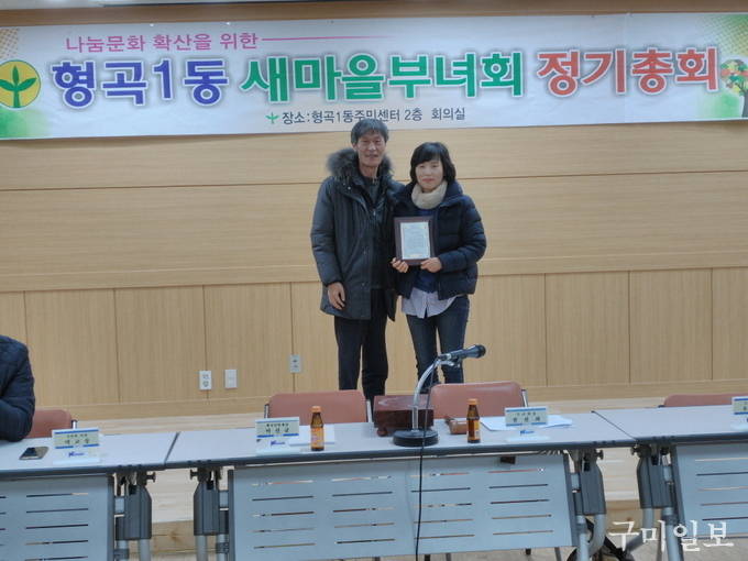 총회에서 새로 선임된 김남영 새마을부녀회장은 “2018년에도 지역사회 발전을 위한 새마을대청소, 행복한보금자리사업, 재활용품수집 등 각종 새마을행사에 적극적인 봉사활동을 전개하여 구미시 최고의 새마을부녀회가 될 수 있도록 노력하겠다”는 포부를 밝혔다.