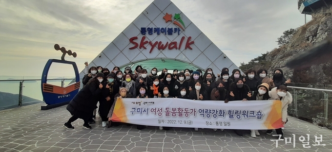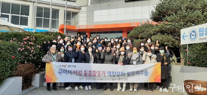 구미시(시장 김장호)는 2022년 12월 9일(금) 통영 일원에서 여성 돌봄활동가 60여명이 참석한 가운데 역량강화 힐링워크숍을 실시했다.