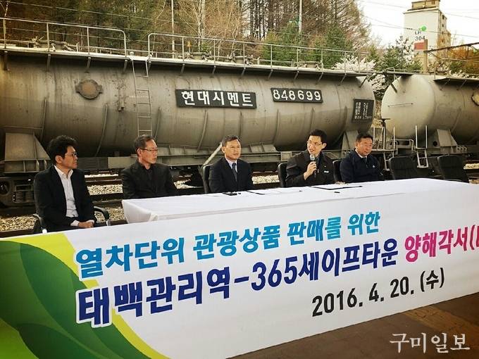 태백 365세이프타운(관장 이영걸) 과 코레일 강원본부 태백관리역은 4월 20일 11시 태백역 플랫폼 현장에서 안전체험 테마열차 상품 개발 및 전국 유치를 위해 공동협약(MOU)을 체결하고 단체 모객에 상호협력하기로 했다.