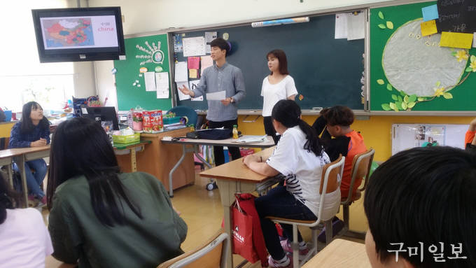 이번 세계이해교육은 협력대학인 금오공대와 지난 3월부터 계획하여 실시하는 것으로 1학기 3개반, 2학기 4개반 총 7개반 178명의 6학년 학생들이 참여하게 된다. 금오공대에 재학 중인 외국인 대학생 1명과 한국인 대학생 1명이 한 조를 이루어 강사로서 수업에 참여하고, 외국인 대학생으로부터 간단한 인사말, 전통춤, 악기, 전통놀이, 전래동화 등을 배우게 된다. 이를 통해 타국의 문화 이해 및 세계시민의식 함양을 목적으로 이 수업이 계획되었다.