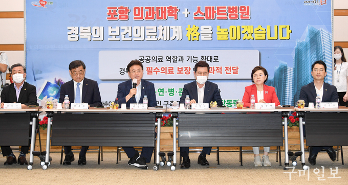 의과대학 유치 추진계획 보고에서 △경북은 인구 1000명당 의사 수는 1.4명으로 전국 16위, △인구 10만명당 의대정원은 1.85명으로 전국 14위, △치료가능 사망률 전국 최고, △상급종합병원이 없어 중증·위중환자 치료곤란 등 열악한 의료환경을 지적하며 도내 의과대학 유치의 필요성을 강조했다.