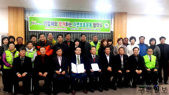 구미시(시장 남유진)와 자연보호구미시협의회(회장 천명석)는 11월 25일 14:30 인동동사무소 2층 소강당에서 LG이노텍 여상삼 상무 등 30명이 참석한 가운데 베올리아워터코리아(주)에 이어 두번째로 기업체와 함께하는 자연보호운동 MOU를 체결하였다.