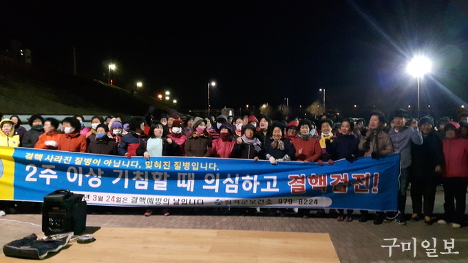 칠곡군보건소는 지난 24일 결핵예방의 날을 맞아 낙동강 한가람둔치와 왜관역 광장에서 결핵의 위험성과 예방 방법을 알리기 위해 군민들에게 홍보물을 배부했다.