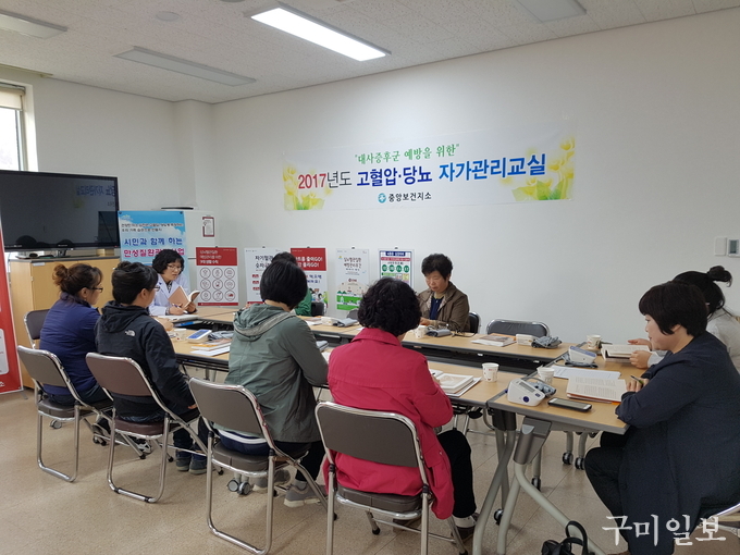 김천시(시장 박보생)는 지난 4일부터 6월 13일까지 10주과정으로 중앙보건지소 만성질환 사업실 및 회의실에서 만성질환자 10명을 대상으로 제1기 고혈압·당뇨 자가관리교실을 운영한다.