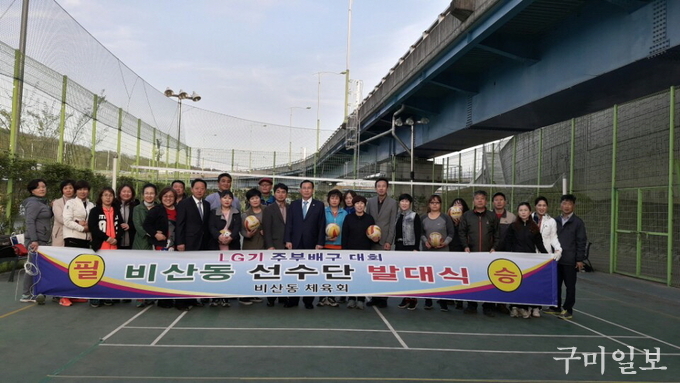 비산동(동장 전용직)에서는 지난 2017.4.10(월)18:00 비산나루터체육공원 배구장에서 비산동체육회(회장 황대영)주관으로 시 · 도의원, 주부배구선수단, 체육회이사 등 30여명이 참석한 가운데 제25회 LG기 주부배구대회 선수단 발대식을 가졌다.