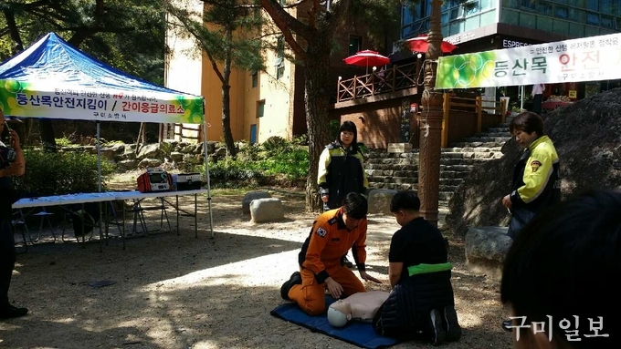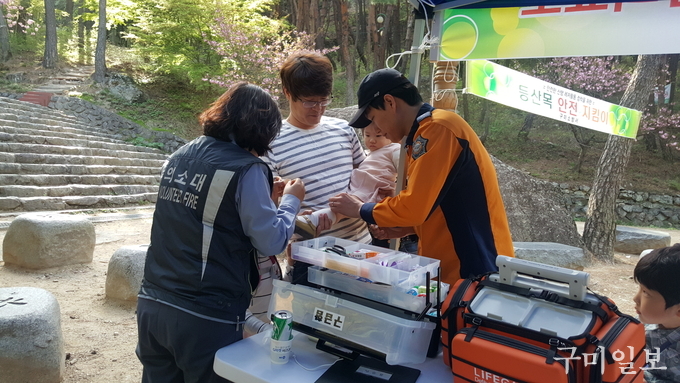 구미소방서(서장 이진우)는 4~5월 봄철 산악사고 안전대책의 일환으로 금오산 등산목 안전지킴이 및 간이 응급의료소를 운영한다.