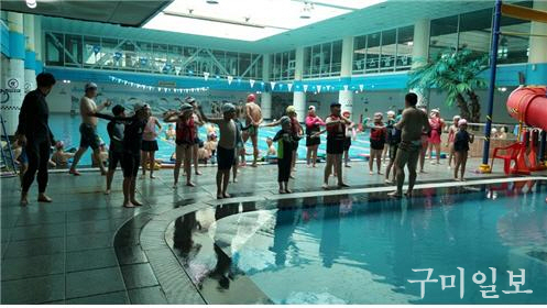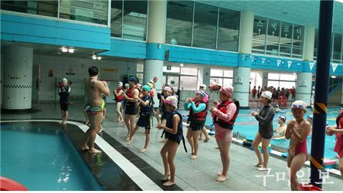 구미초등학교(교장 박인숙)는 5월 29일(월)~6월 2일(금) 기본영법, 생존수영 수업 주간을 운영하였다.