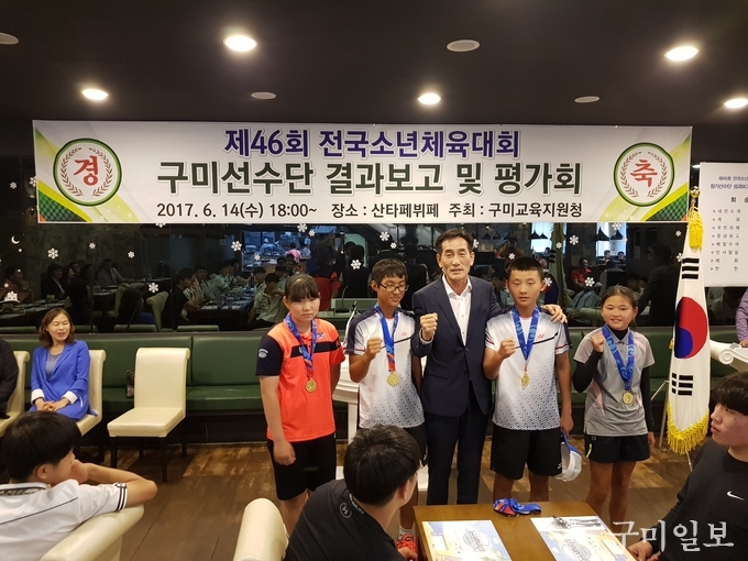 구미교육지원청(교육장 노승하)은 지난 6월 14일(수) 제46회 전국소년체육대회에 참가한 선수들과 지도교사, 코치, 학교장, 구미시 체육회 관계자 등 160여명이 참석한 가운데 성과보고 및 평가회 자리를 마련하였다.