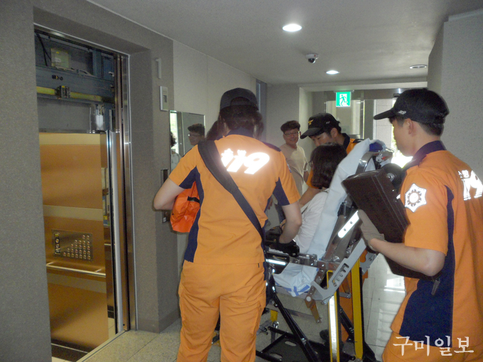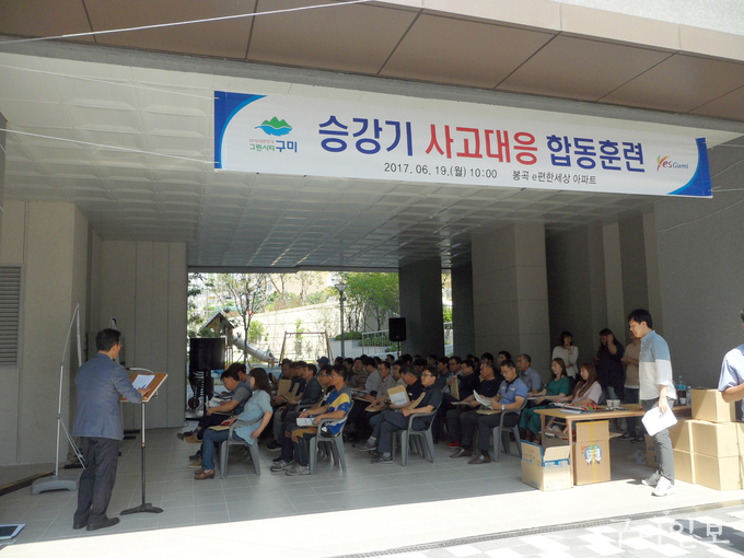 이번 훈련은 구미시가 주관하고 구미소방서, 한국승강기안전공단, 승강기 유지관리업체 및 봉곡 e편한세상 아파트관리소가 참여하고 관내 아파트 승강기담당자 및 승강기 유지관리업체 등 100여명이 참관했다.