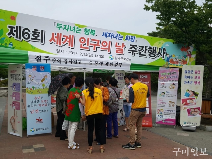 칠곡군보건소는 지난 14일 ‘제 6회 세계 인구의 날(7월 11일)’ 주간을 맞아 왜관역 일원에서 저출산 극복 홍보부스 운영 및 캠페인을 실시했다.