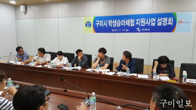 구미시(시장 남유진)는 지난 17일(월) 구미칠곡축협 본점 3층 회의실에서 구미교육지원청 청소년담당, 학교관계자, 승마장 대표 등 40여명이 참석한 가운데 학생승마체험사업의 원활한 추진을 위한 설명회를 개최했다.