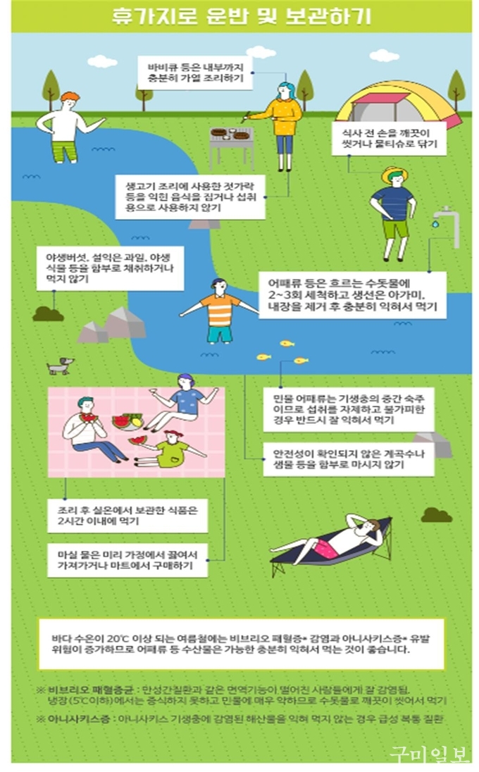 김천시 보건소(소장 손태옥)에서는 바다, 계곡, 산림 등 휴가지에서 보다 안전하고 건강한 여름을 보내기 위한 「휴가철 식중독 예방 요령」을 꼭 지켜 줄 것을 당부했다.
