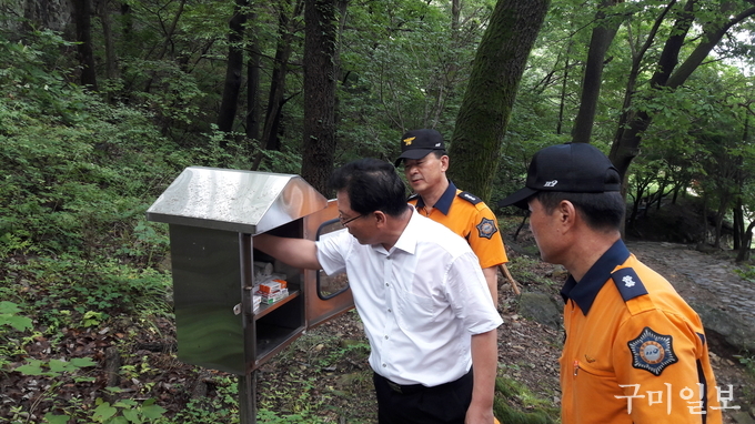 경북소방본부는 도내 23개 주요산에 59개의 산악구급함을 관리하고 있으며, 구미 금오산에는 9개소가 설치되어 있다. 국립공원 및 도립공원 관리사무소와 연계하여 약품 등이 부족할 경우 수시로 보충하고 있다.