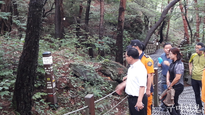 이번 현장점검은 어느덧 폭염이 물러가고 등산의 계절인 가을철이 다가옴에 따라 등산객들이 증가할 것을 예상하여 사전에 산악구급함 등 산악안전시설물을 점검하기 위해 실시하였다.