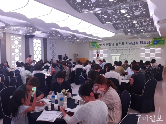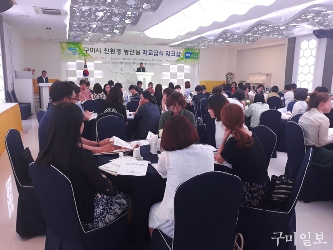 구미시(시장 남유진)는 구미시학교급식지원센터 주관으로 2017. 8. 30(수) 남통동 구미웨딩뷔페 로즈홀에서 관내 초‧중‧고‧특수학교 영양교사 등 100여명이 참여한 가운데 구미시 친환경농산물 학교급식 워크숍을 개최하였다.
