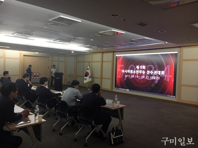구미시(시장 남유진)에서는 지난 9월 3일(일) 14:00 시청 3층 상황실에서 제9회 아시아청소년 우슈선수권대회 조직위원, 집행위원 및 구미시 관계자 등 20여명이 참석한 가운데 「제9회 아시아청소년 우슈선수권대회」준비상황 2차 중간보고회가 개최되었다.