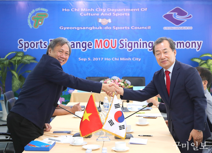 경북도는 5일(화), 베트남 호찌민시청에서 호찌민시와 경상북도간 스포츠교류를 위한 양해각서를 체결하고 태권도, 유도, 축구, 배구, 배드민턴, 펜싱, 사격, 양궁, 육상 등 9개 종목에 대해 훈련교류 및 친선경기를 실시하고 스포츠 관련 투자 협력 등을 통한 스포츠발전프로젝트를 함께 시행하기로 하였다.