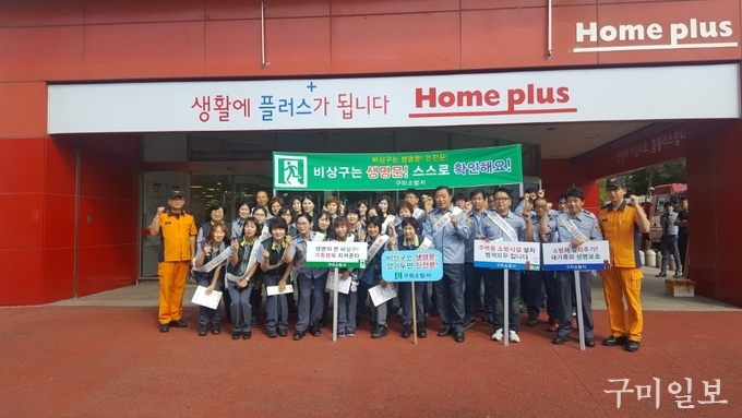 구미소방서(서장 전우현)는 9월14일 홈플러스 광평점에서 추석연휴 대비「비상구 안전관리 캠페인」을 실시했다.