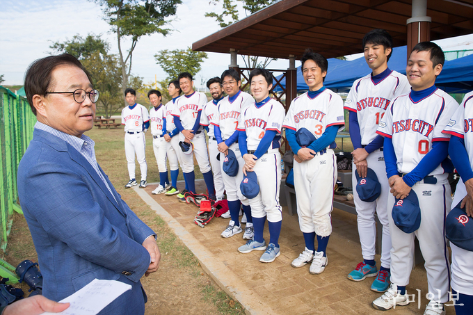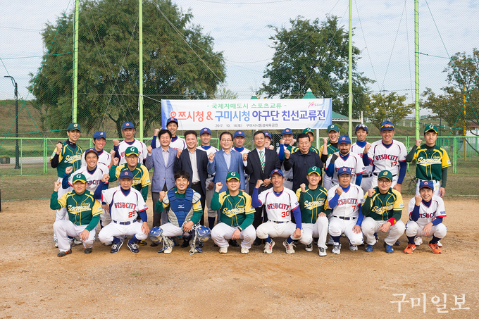 구미시(시장 남유진)는 지난 10월 14일(토)에 낙동강체육공원에서 구미시청 새마을야구단, 구미경찰서크로우즈야구단, 일본 오츠시청야구단 등 선수 50여명이 참가한 가운데 자매결연도시인 오츠시청 야구단과 친선교류전을 개최하였다.