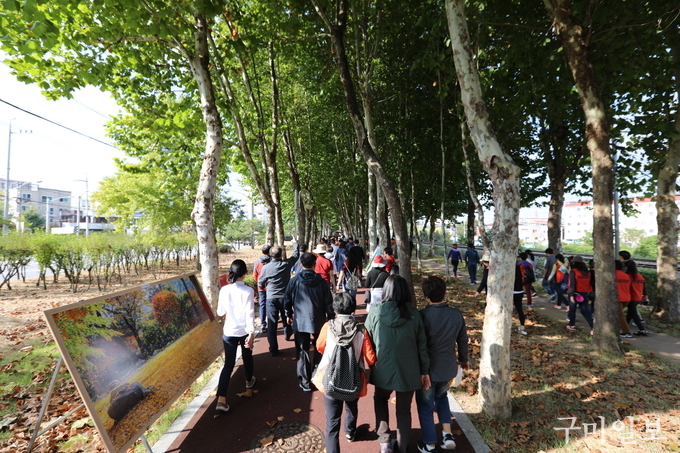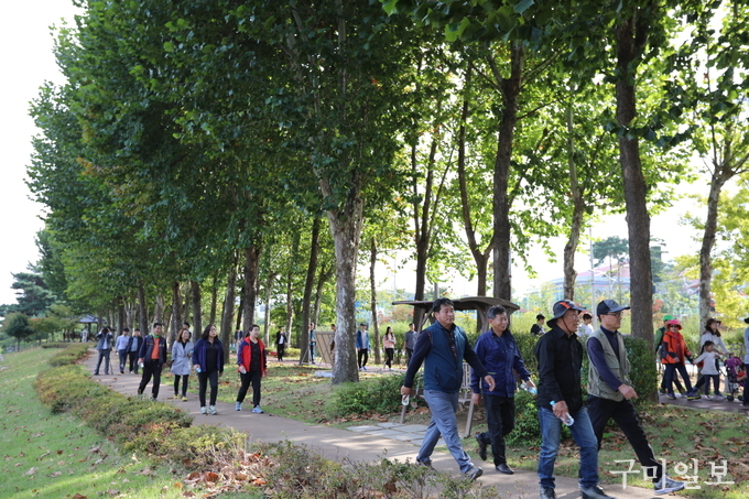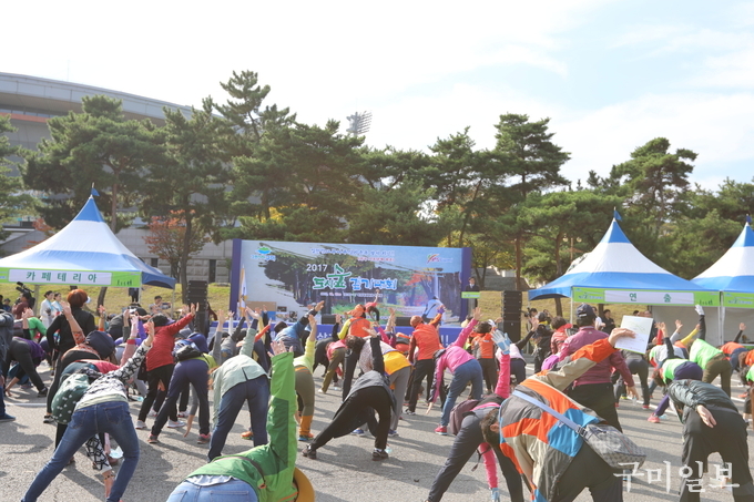 구미시(시장 남유진)는 『2017 도시숲 걷기대회』를 10. 17(화) 14:00 철로변 도시숲(송정동~광평동)에서 이묵 구미부시장, 김익수 구미시의회 의장을 비롯한 시·도의원, 기관단체장, 봉사단체, 학생, 시민 등 800여명이 참석한 가운데 성황리에 개최하였다.