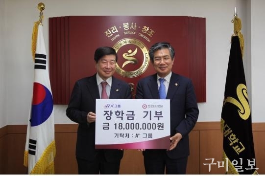 한국체대(총장 김성조)는 27일 오후 송파구에 위치한 한국체대 본관 2층 총장실에서 A+그룹(회장 곽근호)과 장학금 기부 전달식을 가졌다.