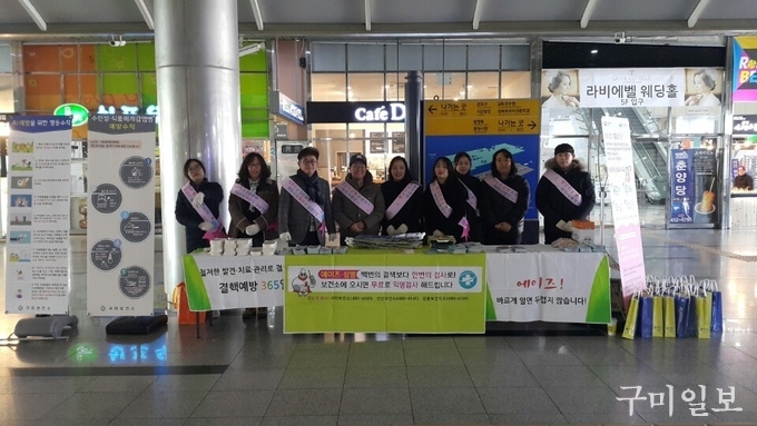 구미보건소(소장 구건회)에서는 지난 12월 1일(금) 오전 10시부터 12시까지 2시간 동안 공무원 등 50여 명이 참여하여 구미역 광장에서 에이즈와 감염병 예방 바로알기 캠페인을 전개했다.