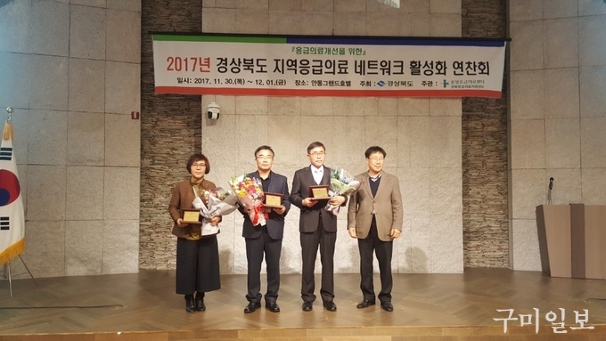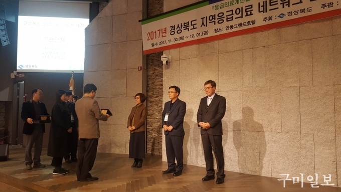 구미보건소(소장 구건회)는 지난 2017. 11. 30.(목) 안동 그랜드호텔에서 경상북도 주관으로 실시한 “2017년 응급의료 네트워크 활성화 연찬회”에 참석하여 응급의료체계의 질적 수준향상을 위해 노력한 공로로 경상북도지사 우수기관 표창을 수상하였다.