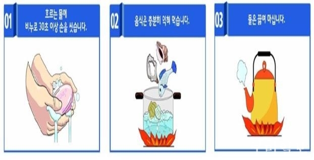 노로바이러스를 예방하기 위해서는 흐르는 물에 비누로 30초 이상 손을 자주 씻고, 음식은 충분히 익혀 먹으며, 물도 끓여 마시면 도움이 된다.