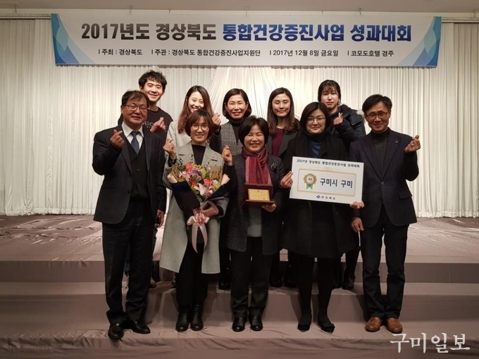 구미시(시장 남유진)는 지난 12월 8일(금) 실시된 경상북도 주최 ‘2017년 지역사회 통합건강증진사업 성과대회’에서 우수기관에 선정되어 경북도지사 표창과 상금 150만원을 받았다.