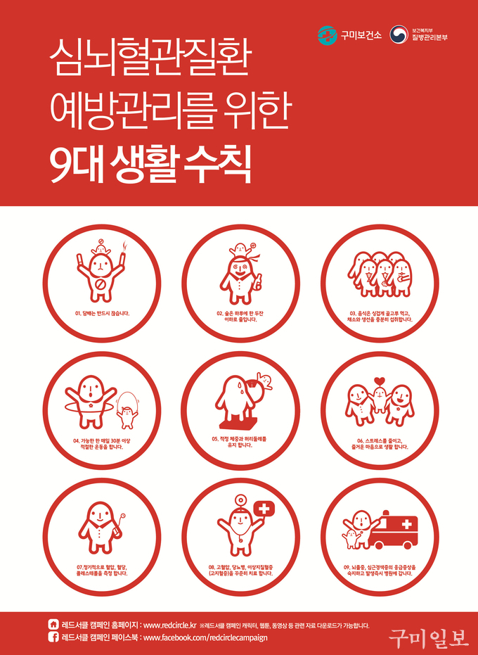 따라서 구미보건소는 뇌졸중 등 심뇌혈관질환예방을 위해 고혈압환자 조기발견 캠페인 실시, 뇌졸중의 증상 알기 리플릿과 홍보물 배부, 건강상담실을 통한 혈압, 혈당, 콜레스테롤의 정기적 측정과 뇌졸중, 심근경색 증상 교육 및 개인별 맞춤 상담을 실시하며 금연 결심자를 위해 상시 금연클리닉도 운영 중이다. 특히 취약계층에는 방문건강관리 서비스를 제공하여 한랭질환에 대비하도록 하였다.