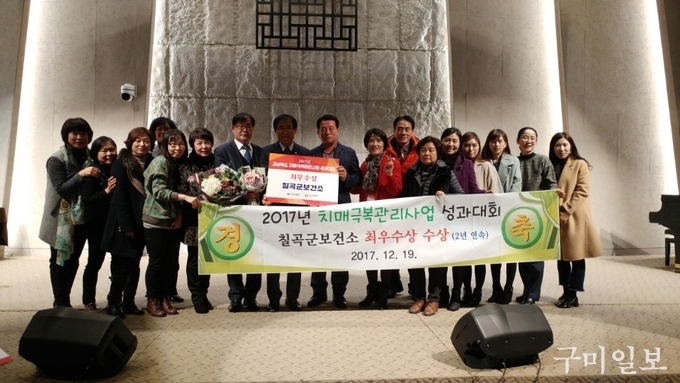 칠곡군보건소는 12월 19일(화) 안동 그랜드호텔에서 개최된 ‘2017년 치매극복사업 평가대회’에서 최우수 기관상을 수상했다.