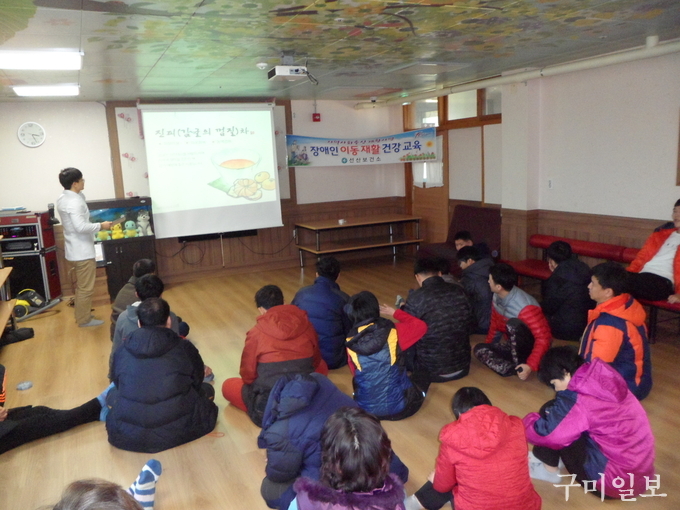선산보건소(소장 소지형)는 2018년 2월 1일(목) 14시 30분부터 구미 사랑의쉼터(단기 장애인 거주시설)에서 장애인 및 시설종사자, 자원봉사자 등 40여명을 대상으로 장애인 이동재활 건강 교육을 실시했다.