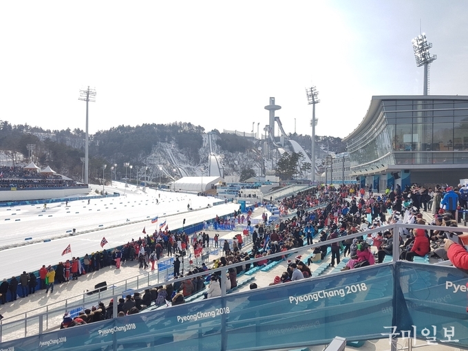 이날 경기는 남자 40km 계주로 1위 노르웨이, 2위 러시아, 3위 프랑스로 TV 에서 보는 것보다 2018 평창 동계올림픽 현장에서 느끼는 분위기가 한층 더 뜨겁게 느껴졌다.