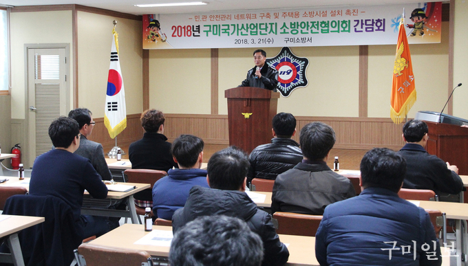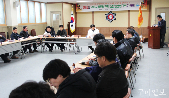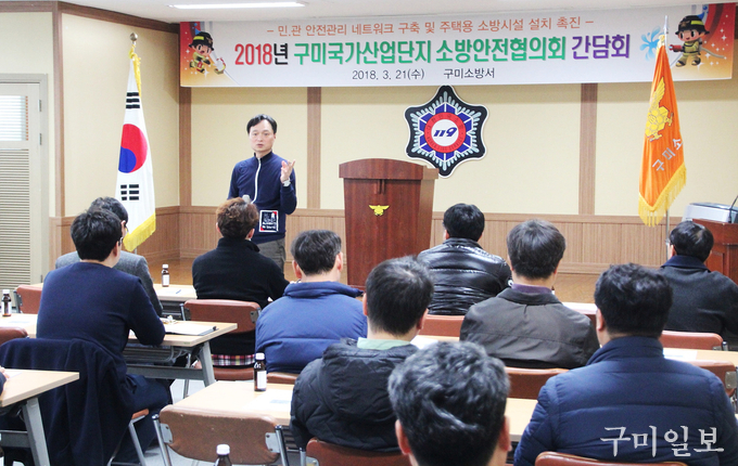 구미소방서(서장 전우현)는 3월 21일(수) 구미소방서 2층 대회의실에서 안전관리 네트워크 구축 및 주택용 소방시설 설치 촉진을 위한 ‘구미국가산업단지 소방안전협의회’ 간담회를 개최했다.
