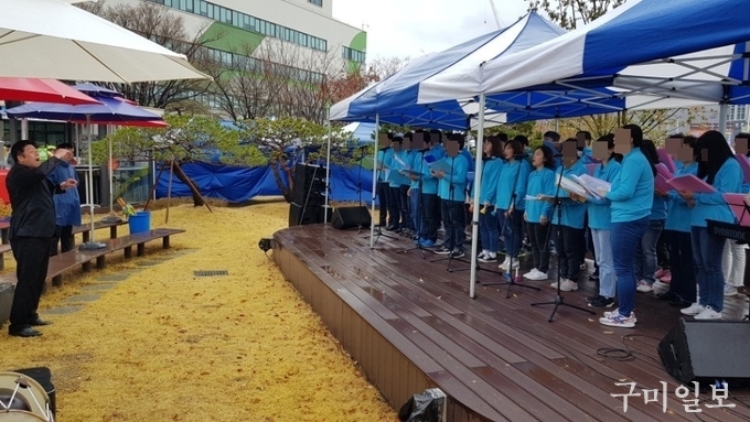 구미시정신건강복지센터(센터장 김희숙)의 「YES구미합창단」은 삼성전자 갤럭시 S9 런칭에 따른 임직원 감사 행사에 초청되어 지난 3월 19일(월) 오후 12시 삼성전자 구미2사업장 소통테라스에서 축하공연을 펼쳤다.