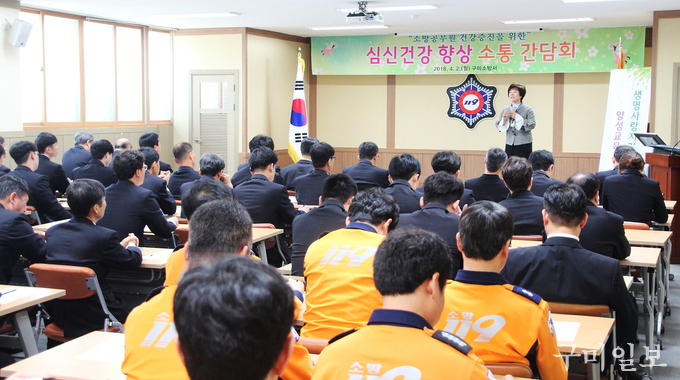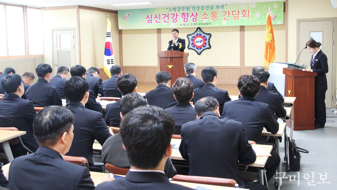 또한 구미시 정신건강복지센터 박경란 강사를 초청하여 소방공무원 심신건강 향상 특강과 함께 직무스트레스 해소방안에 대한 강의를 진행하였다.