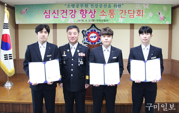 구미소방서(서장 전우현)는 4월 2일(월) 오전 구미소방서 대회의실에서 소방공무원 130여명이 참석한 가운데 심신건강 향상을 주제로 직장교육훈련, 하트세이버 수여 및 재난에 따른 도상훈련을 실시했다.