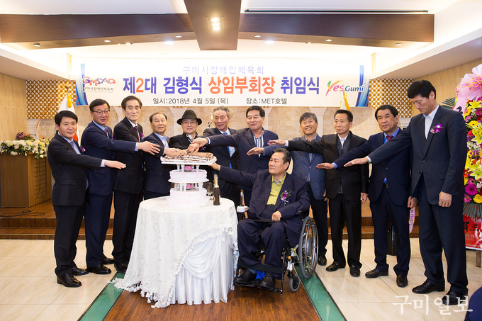 구미시장애인체육회(회장 구미시장 권한대행 이묵)는 지난 4월 5일(목) 오후 5시 메트로호텔에서 장애인체육관계자와 장애인단체장, 유관단체장 등 150여명이 참석한 가운데 신임 김형식 구미시 장애인체육회 상임부회장 취임식을 가졌다.