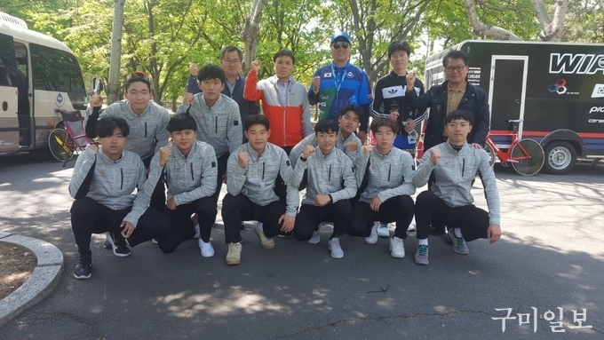 구미시 자전거 서포터즈단은 4월 18일(수) 11시에 대구만촌자전거경기장을 방문하여 경북도민체전 종합우승 2연패 달성을 위해 열심히 훈련 중인 자전거 선수단을 격려하고, 소정의 격려금과 후원물품을 전달하였다.