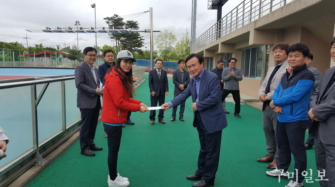 제56회 경북도민체육대회 구미시 롤러 서포터즈단(단장 국민연금공단구미지사장 곽기정)은 4월 24일(화) 15시에 선수들이 훈련하고 있는 구미시보조경기장내 인라인경기장을 방문하여 격려금과 물품을 전달하며 임원진과 선수들을 격려 하였다.