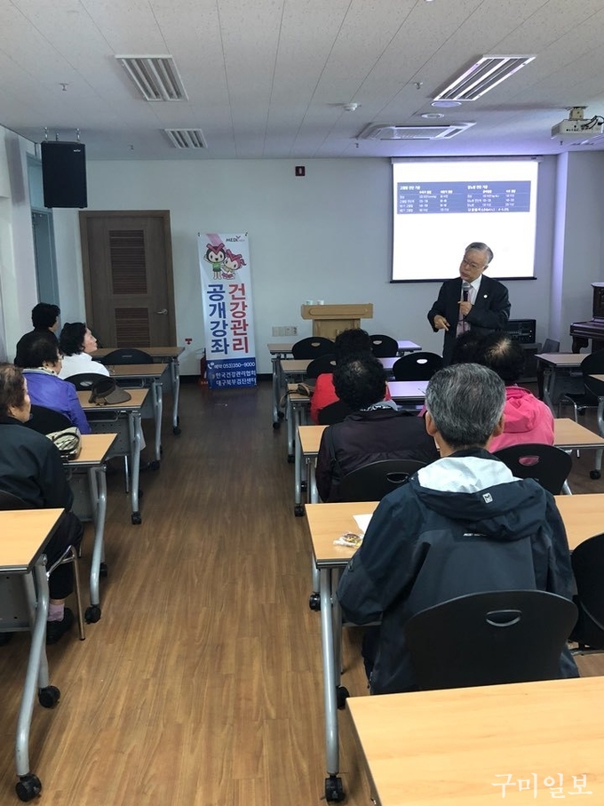 한국건강관리협회 경북지부(이하 건협 경북지부, 본부장 이영하) 호흡기 내과 전문의 정태훈 과장은 대구 북구 원일교회에서 노인대학생 대상으로 ‘건강강좌’를 실시하였다.