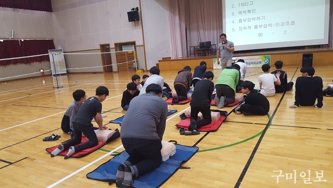 김천시(시장 박보생)는 ‘2018년 심폐소생술 등 응급처치 교육’을 4월 27일부터 8월 8일까지 13개교 중·고등학생 및 자동심장충격기 관리자, 병원 구급차기사, 김천시 공무원 등 600여명을 대상으로 응급상황 대처 능력을 강화하고자 전문강사를 초빙하여 실시한다.