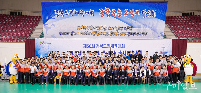 구미시는 지난 4. 27일 부터 4. 30일 까지 4일간 상주시 일원에서 개최된 제56회 경북도민체육대회에서 26개 종목 810명의 선수단(선수 588명, 임원 222명)이 참가해 육상(트랙), 자전거, 복싱, 레슬링, 씨름, 검도, 궁도, 볼링 종목에서 우승을 차지하는 등 종합순위 1위(227.5점)의 성적으로 경북도민체육대회 2년 연속 종합우승의 쾌거를 이뤘다.