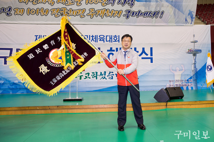 이날 해단식은 구미시체육회 김수조 상임부회장의 경과보고를 시작으로, 우승기(컵) 전달, 단기 반납, 유공자 표창, 축사, 축하공연 순으로 진행되었으며, 이날 행사를 통해 선수단에 대한 격려와 사기진작 및 종합우승에 기여한 유공자에게 감사의 마음을 전달하고 앞으로의 발전 방안을 모색하는 자리를 마련했다.