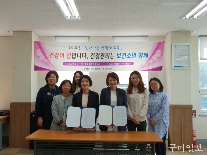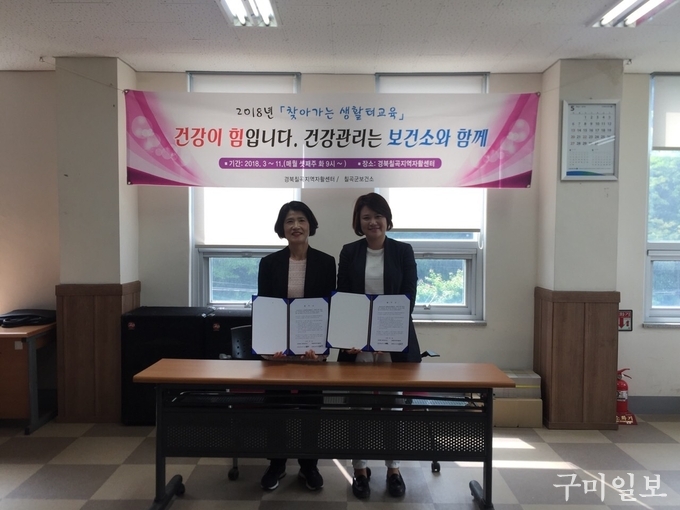 칠곡군보건소(소장 문귀정)는 지난 5월 15일(화) 취약계층(자활프로그램 참여자)의 건강증진과 지역사회 유관기관 파트너쉽 구축을 통한 상호 협력을 목적으로 경북칠곡지역자활센터와 협약을 체결했다.