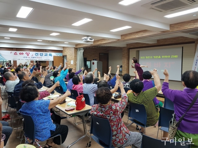 구미시(시장 장세용)에서는 7월 9일(월) 2시부터 구미종합사회복지관 3층 강당에서 의료급여수급자의 건강증진과 재정안정화를 위한 『스마일 건강교육(건강 Up, 의료비 Down)』을 실시하였다.