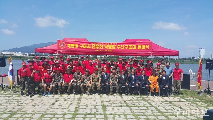 해병대구미시전우회(회장 지일하)는 2018년 7월 14일(토) 동락공원 강변주차장에서 해병대전우회 회원 등 100여명이 참석한 가운데 2018년 수난구조 발대식 개최 및 수난구조 훈련을 실시하였다.